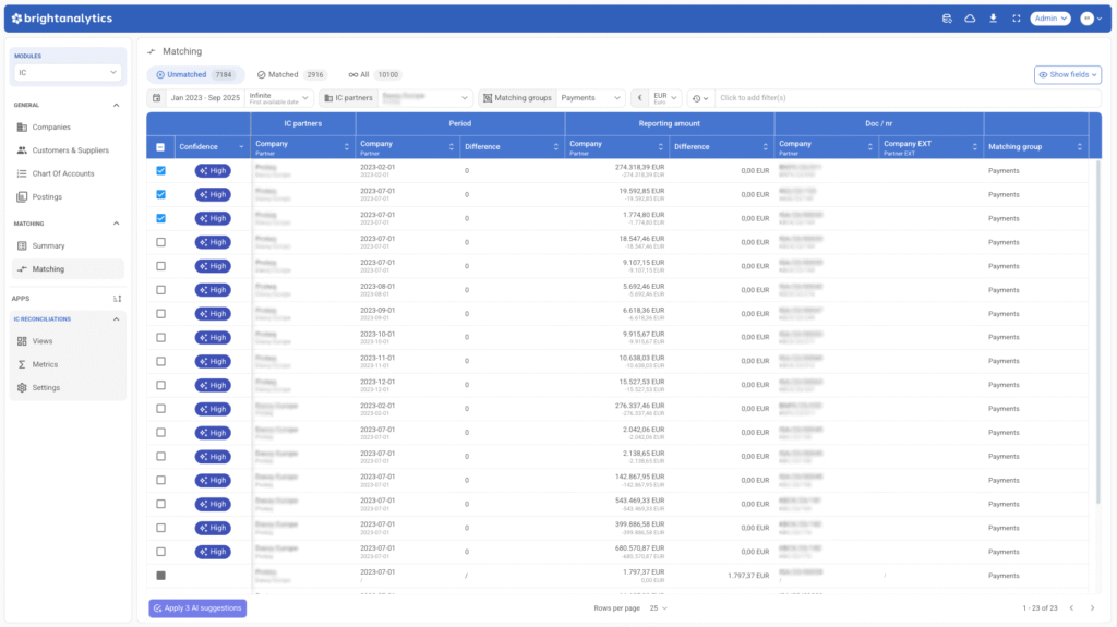 Our intelligent matching engine automatically detects and proposes matches between intercompany transactions.